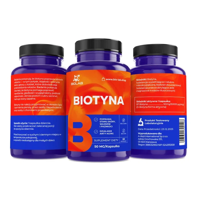 Biotyna w dawce 50 mg to propozycja dla osób szukających wysokiej porcji w codziennej suplementacji. To wygodna opcja, gdy chcesz w prosty sposób uzupełnić dietę w biotynę.