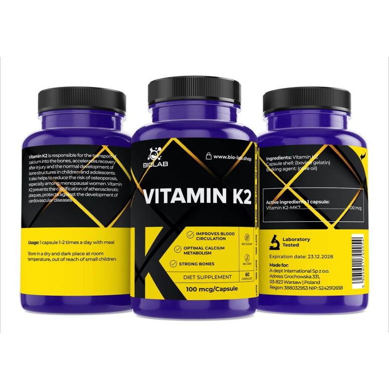 - 100 mcg witaminy K2 MK-7 w jednej kapsułce.