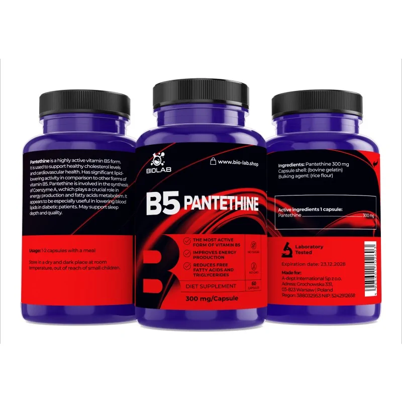 Wsparcie metabolizmu lipidów: Pantetyna jest jedną z najczęściej omawianych form witaminy B5 w kontekście metabolizmu lipidów. To właśnie ten obszar sprawia, że szczególnie interesuje osoby poszukujące suplementacji wspierającej codzienną równowagę metaboliczną i bardziej świadome podejście do kondycji organizmu.